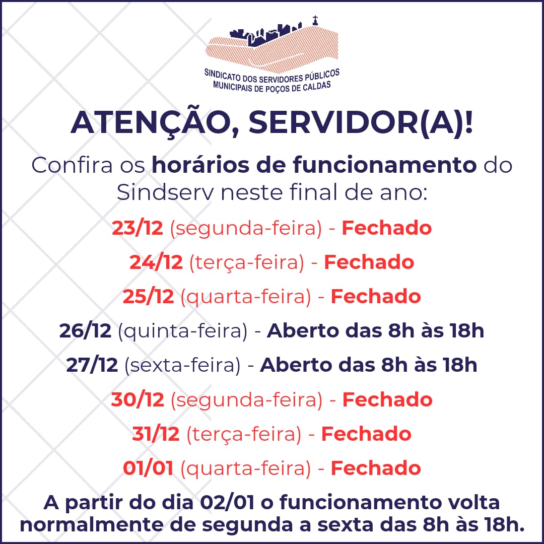 Sobre o funcionamento do Sindserv neste fim de ano