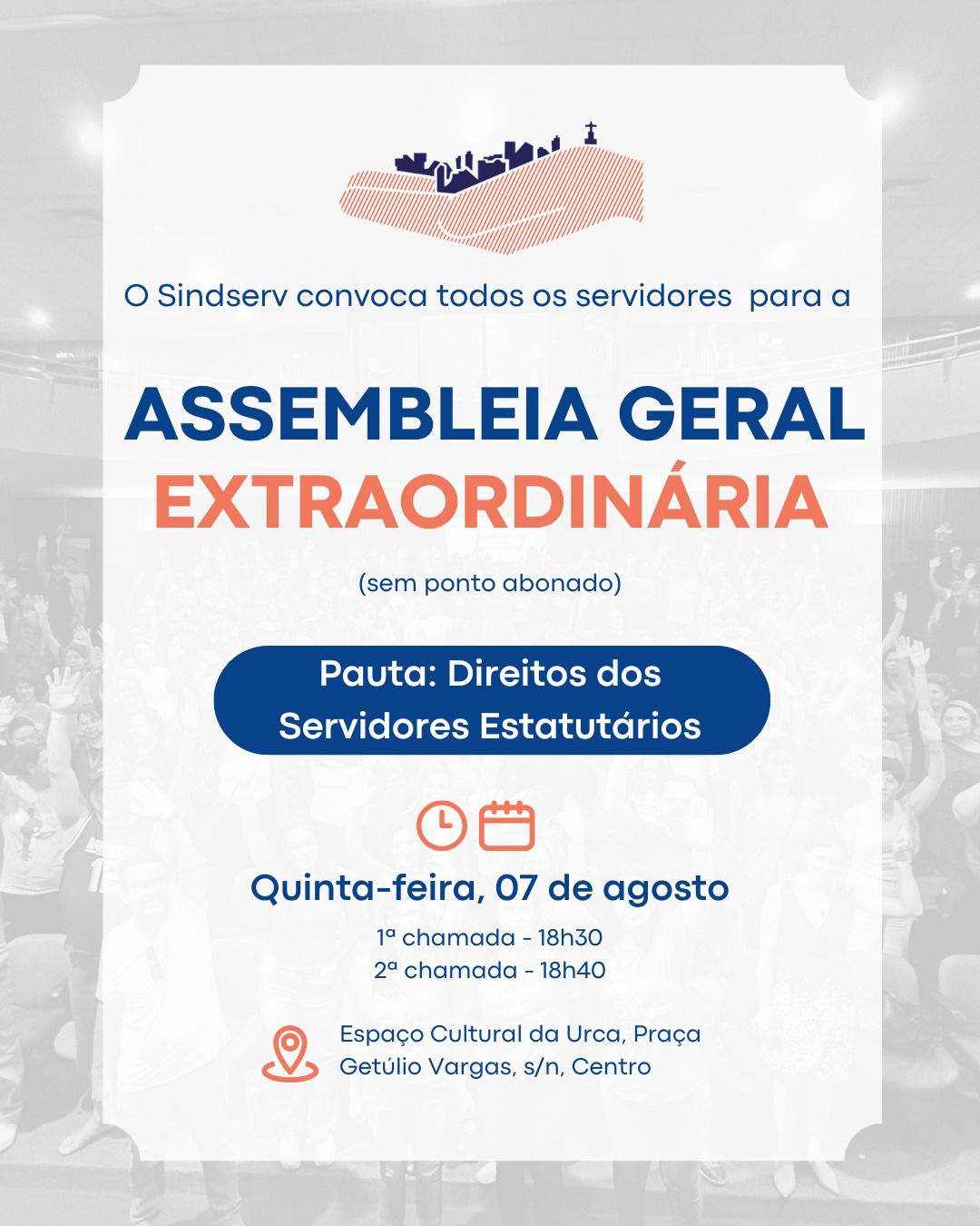 O Sindserv realiza no dia 18 de novembro a segunda assembleia sobre o programa Minha Casa, Minha Vida, voltada a pessoas com renda familiar de até R$ 2.850 e que não possuem casa própria — especialmente quem já fez a entrevista no Sindicato.